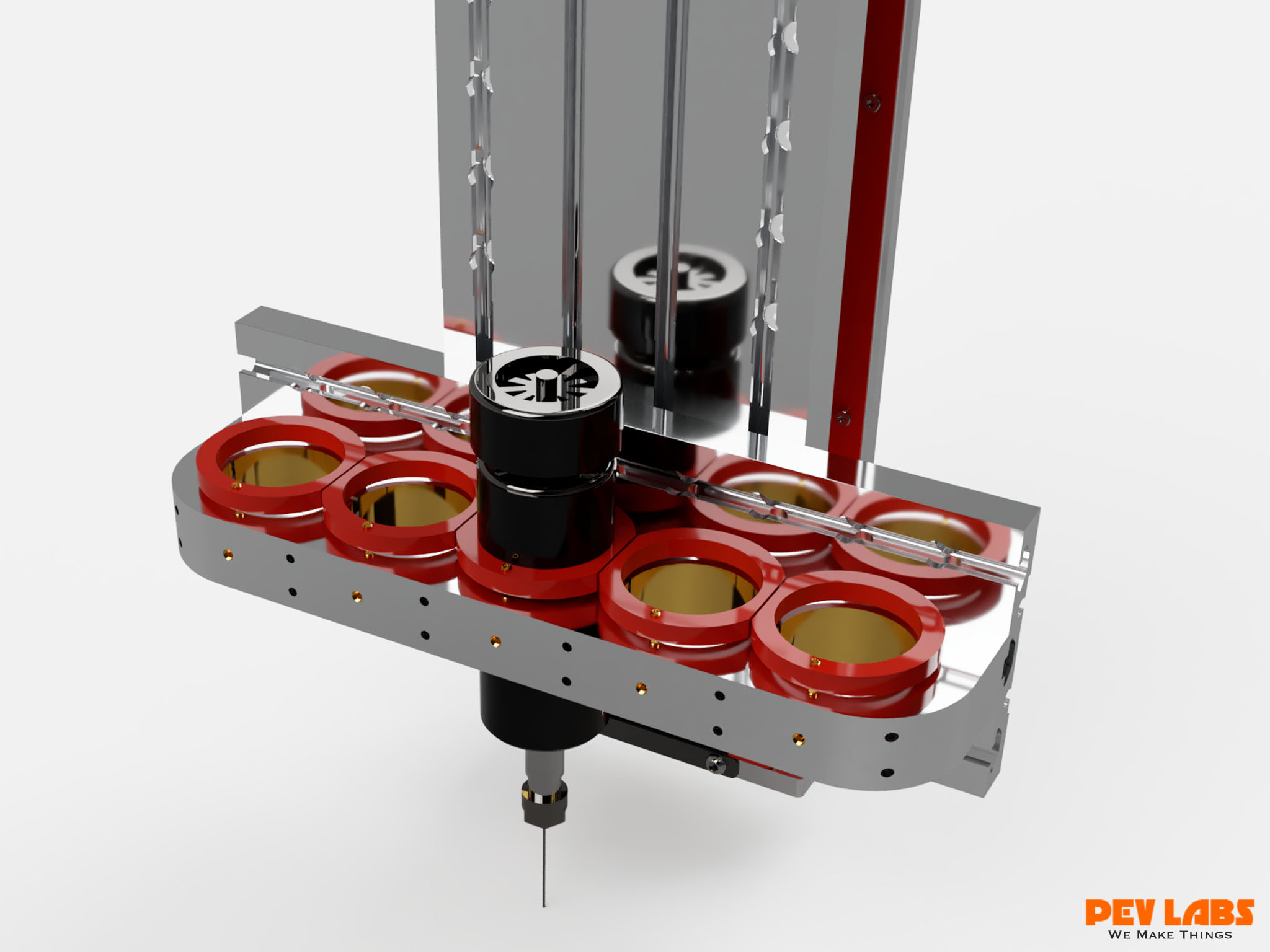 Custom designed multi-spindle CNC Machine with vacuum table. This particular model is a small format and deploys up to five small spindles. The intent of this machine is to produce five sets of fairly tiny parts simultaneously. The custom milled spindle mount has micro Z-depth adjuster rings along with front set screws to lock the spindle heights once adjusted. A custom multi-spindle dust boot to accommodate the many spindles. One could optionally use three spindles in stead of five. Pictured are 52mm air cooled hobby spindles. ER11 collets accept 1/8 end mills. Units run from 3,000 up to 12,000rpm on 24-100 volts DC. Spindle run out 0.01-0.03. We use our DIY large format CNC machine daily as it is the core of our CNC milling service offerings. CNC machining for your personal or business manufacturing needs. Visit our 90 watt DIY CO2 laser cutter engraver project build currently in progress.